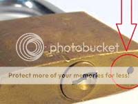 Lỗ nhỏ trên ổ khóa: Khi ổ khóa hoạt động không trơn tru, bạn có thể cho dầu vào lỗ nhỏ này. Ngoài ra, đây cũng là chỗ thoát khi nước rơi vào bên trong ổ khóa. |